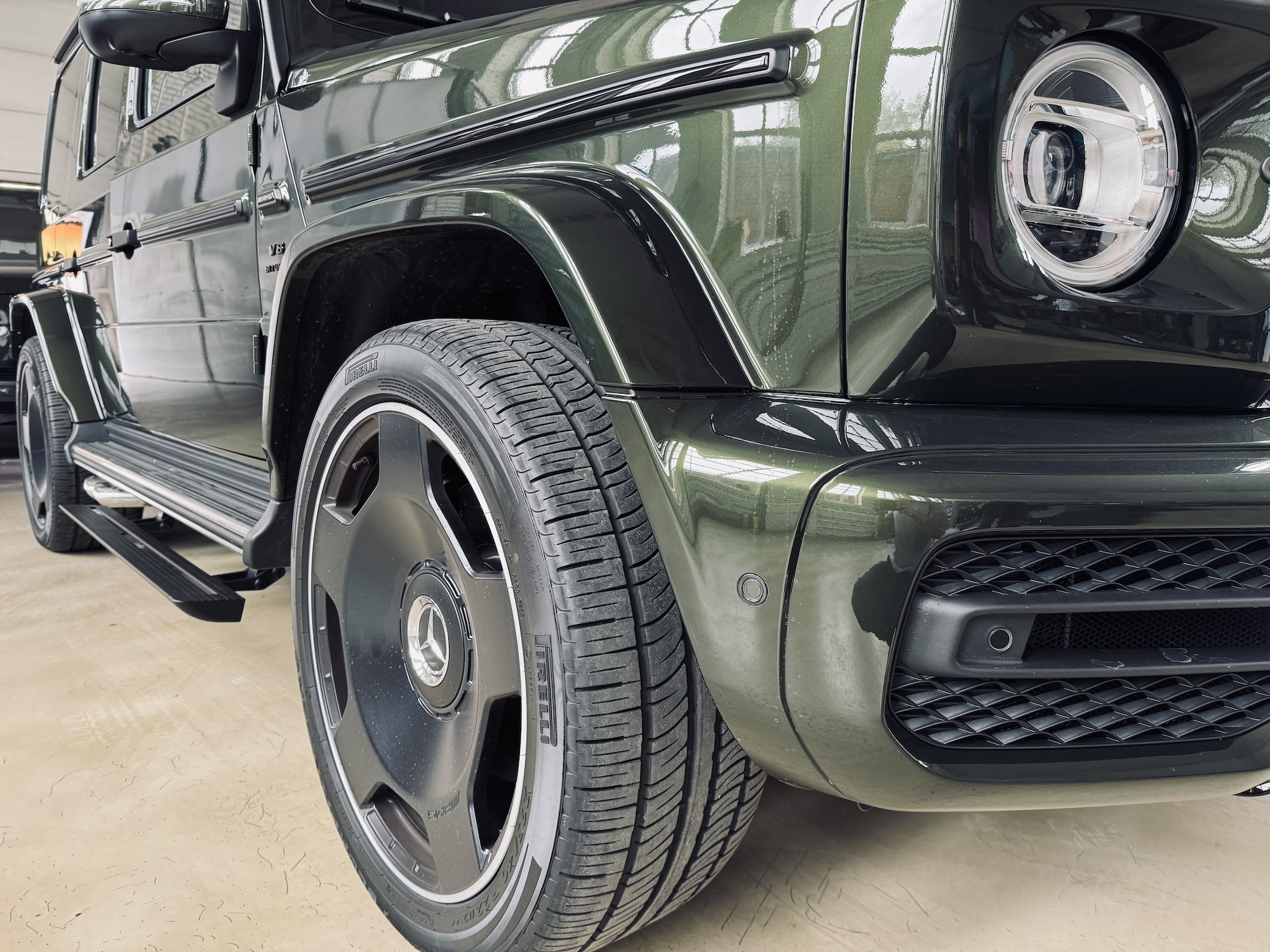 Electric retractableside steps for mercedes-benz G-class III side exhaust