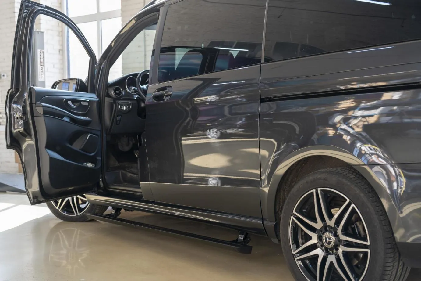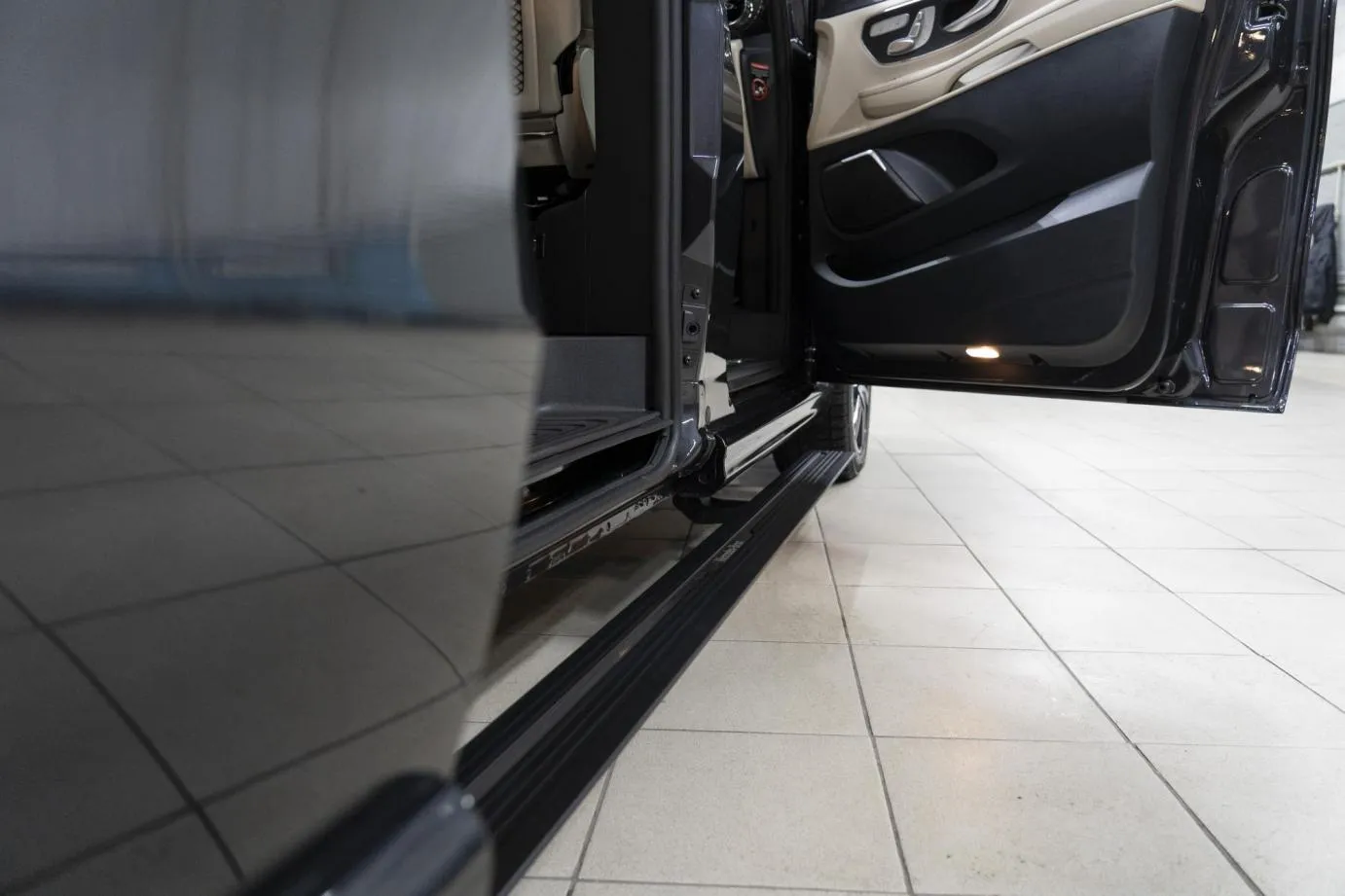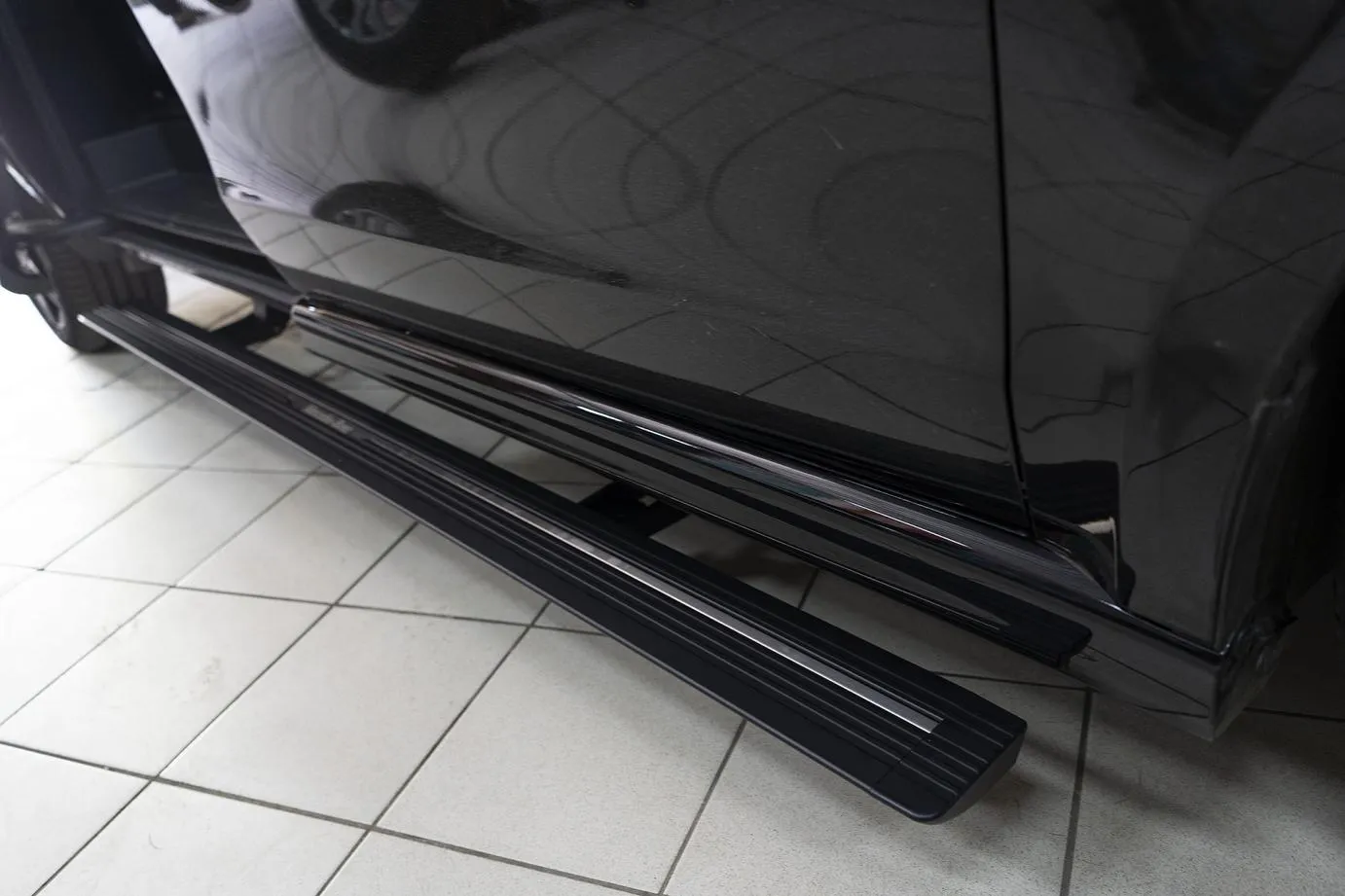 Premium Electric Side Steps // For this luxury SUV build, the Gangsta Paradise automatic running boards serve as the ultimate accessibility upgrade, proving that style and function can coexist seamlessly. Outfitted with integrated LED lighting, these steps were custom-configured at the client's request, who approached us after market options failed to meet both durability and design standards. The goal was to create steps that looked OEM+ while providing superior weather resistance. To complete the transformation, custom rubber tread inserts were added, allowing surefooted entry in all conditions—yes, even mountain terrain. The result is a perfect fusion of utility and urban sophistication.