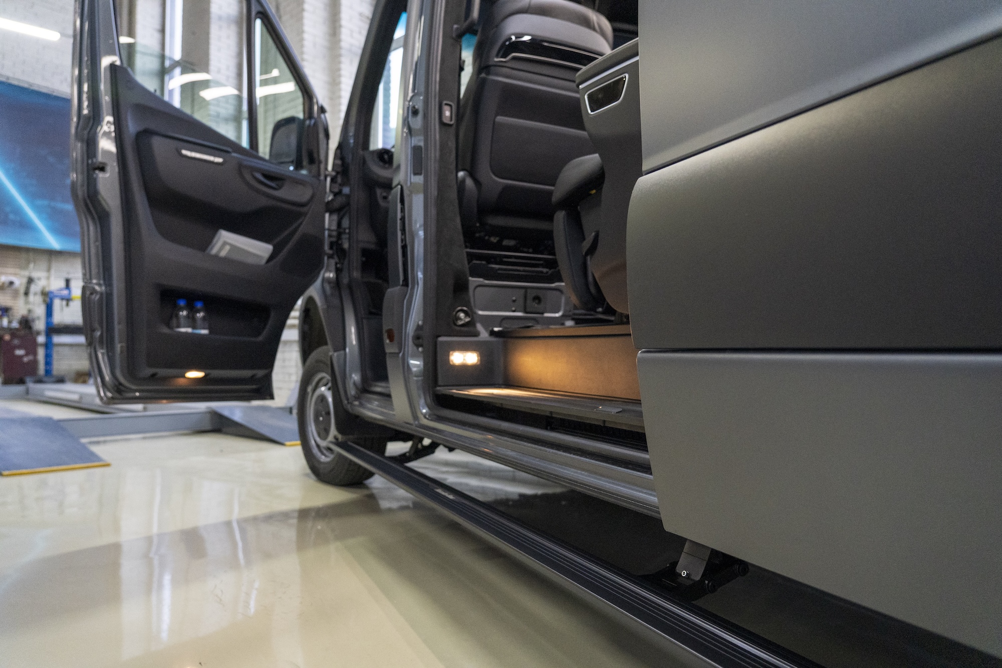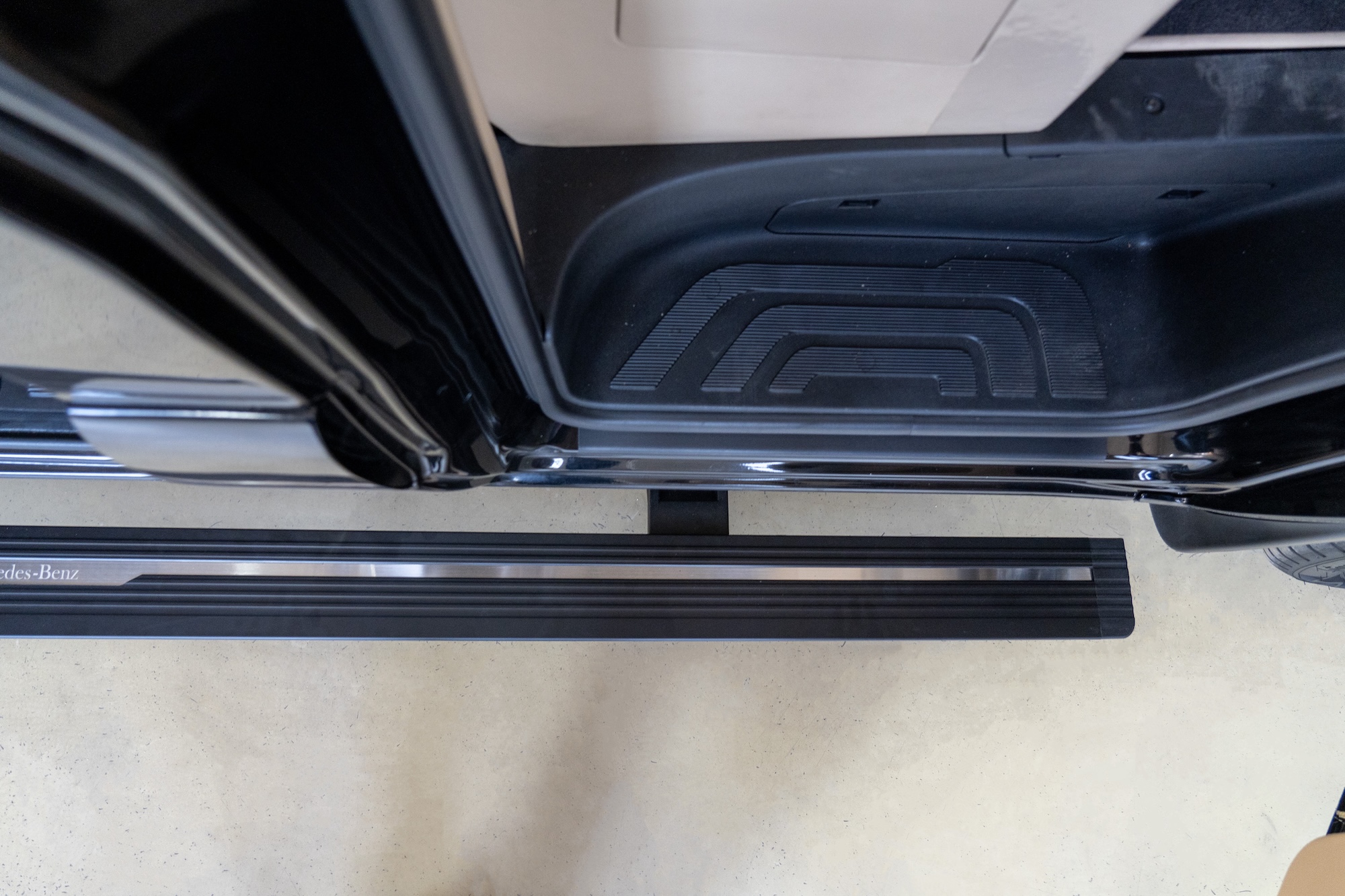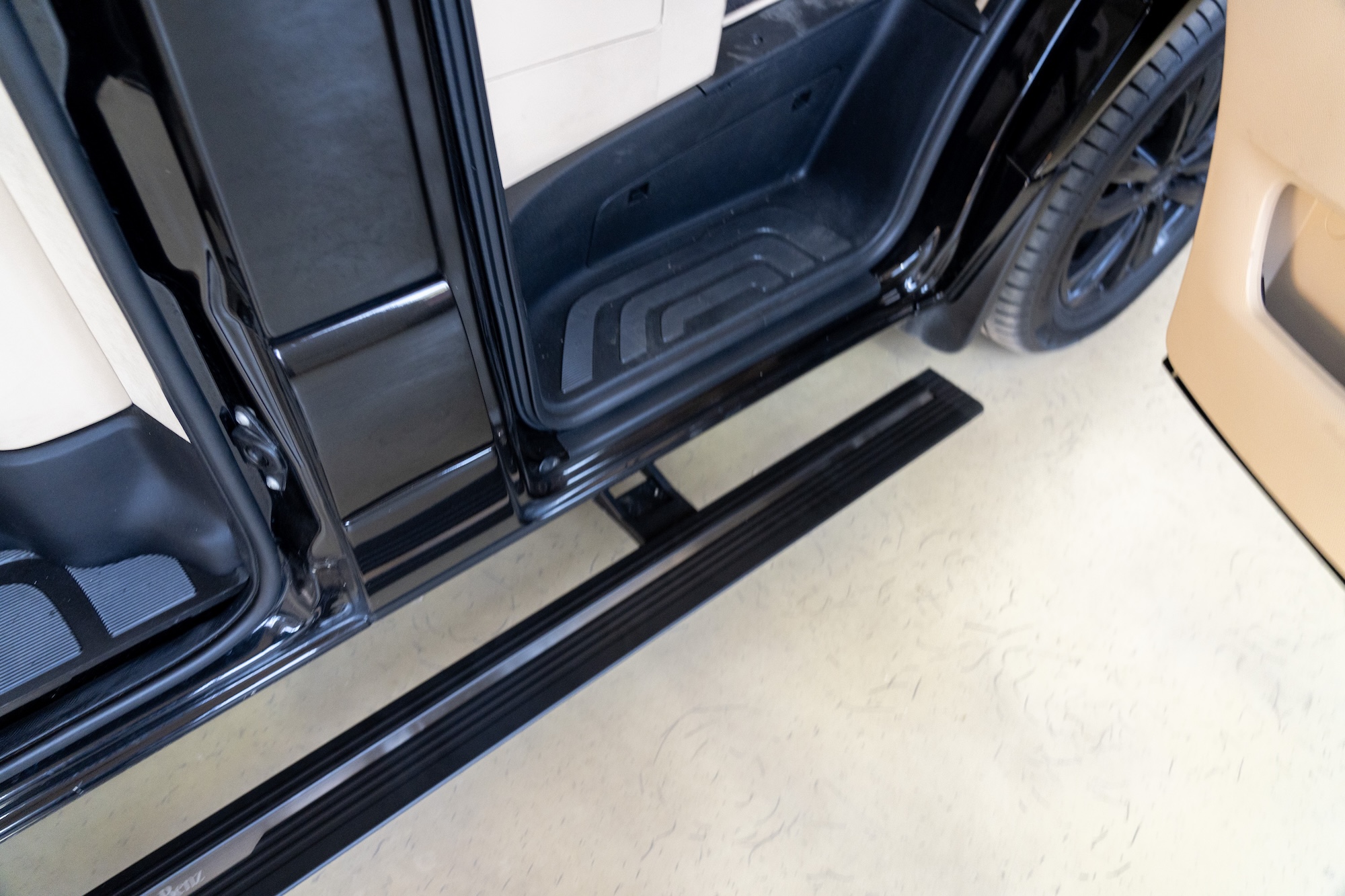 Premium Electric Side Steps // For this luxury SUV build, the Gangsta Paradise automatic running boards serve as the ultimate accessibility upgrade, proving that style and function can coexist seamlessly. Outfitted with integrated LED lighting, these steps were custom-configured at the client's request, who approached us after market options failed to meet both durability and design standards. The goal was to create steps that looked OEM+ while providing superior weather resistance. To complete the transformation, custom rubber tread inserts were added, allowing surefooted entry in all conditions—yes, even mountain terrain. The result is a perfect fusion of utility and urban sophistication.