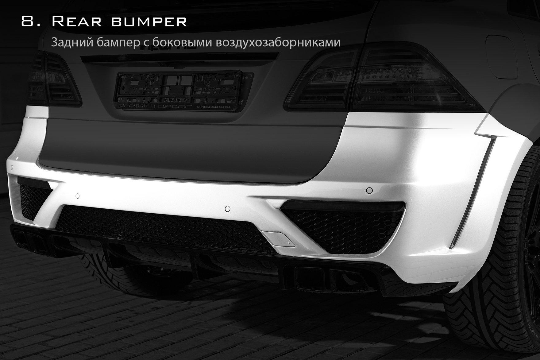 TOPCAR announces the start of work with Mercedes-Benz cars. The first project - an aerodynamic body kit for the ML 63 AMG, which was called "INFERNO". Subtle sense of style, conciseness, harmony, and powerful energy of the winner – these are the concepts that we have tried to integrate in the new project. Black Series by Mercedes-Benz was the inspiration for us to create this body kit.Aero-kit consists of front and rear bumpers, Fender extensions, overlays on the door trims on the front wings, sills, bonnet, spoiler on the fifth door and tips on the exhaust pipe. Additional LED lights integrated into the front bumper. Traditionally, aerodynamic body kit made of carbon fiber and Kevlar using the technology of vacuum forming. Engine modification program (by EVOTECH Motorsport):1. Increasing power to 640 hp and torque to 980 Nm2. Increasing power to 690 hp and torque up to 1,100 Nm3. Increasing power to 760 hp and torque to 1150 NmLogical continuation of the exterior tuning - tuning interior. Every interior is created individually to meet unique customer needs.