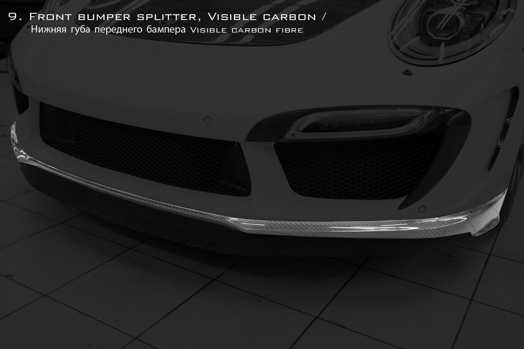TOPCAR is happy to present the very new and the most exclusive work (tuning Porsche) of its professional life the aerodynamic kit Stinger GTR for Porsche 991 Turbo and Turbo S. This is indeed the most sophisticated project TOPCAR has ever done, it took 9 months to finish and concidered as bringing a new child to life. The kit consists of 24 class-A carbon fiber composite body panels which can be fitted professionally only at TOPCAR specialized center due to high standard precision job where 90% of exterior is to be changed completely, several carbon panels are to be bonded with the steel body using hi-tech materials and know how skills. Some parts of the kit could be lacquered to highlight the beauty of carbon fibers. Due to high complexity of the project TOPCAR specialists are only able to assemble two cars a month at their premises. By special request the kit could be assembled at clients site with TOPCAR specialists travel and accommodation costs covered. On top of that: - the car performance could be increased by 60 hp and 130 Nm. using special HP kit. - the look of your car could be personalized even further by selection of topnotch wheels from our partner ADV.1 Wheels.