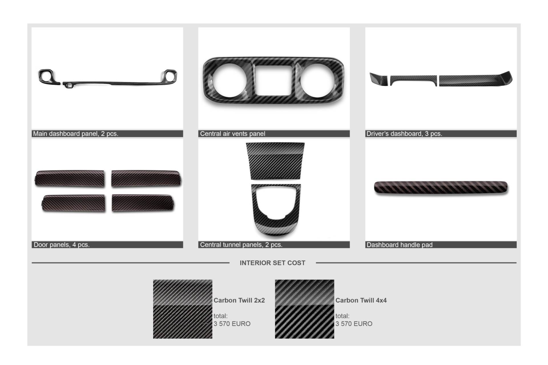 Interior parts set (Carbon Twill 2x2 or Carbon Twill 4x4)